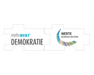 mehrWERT Demokratie wird vor allem aus Mitteln des Bayerischen Staatsministeriums für Familie, Arbeit und Soziales gefördert. Weitere Zuschussgeber sind u.a. die Bayerische Staatskanzlei, die Stiftung Wertebündnis Bayern, die Bayerische Sparkassenstiftung, die Hanns-Seidel-Stiftung und die Friedrich-Naumann-Stiftung.